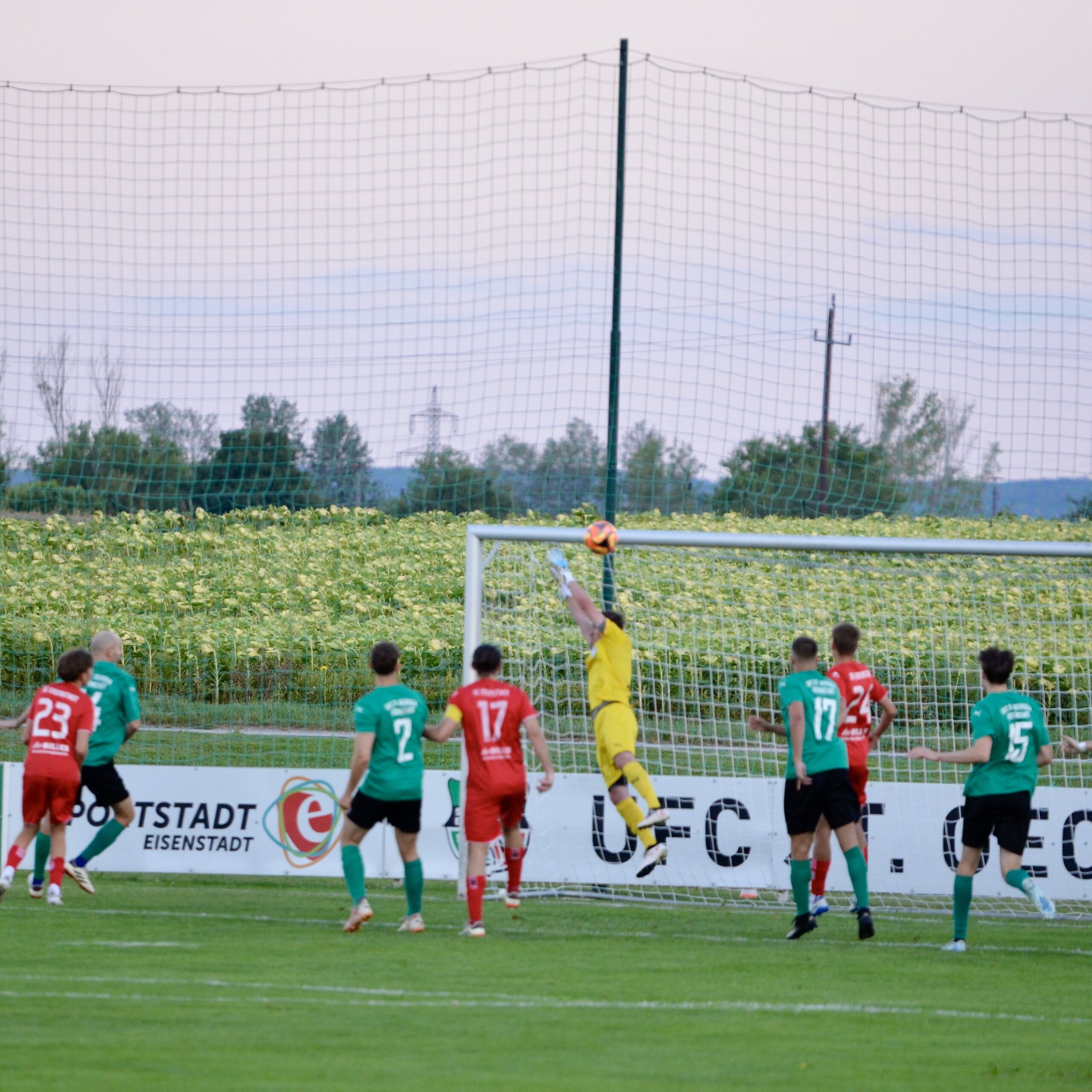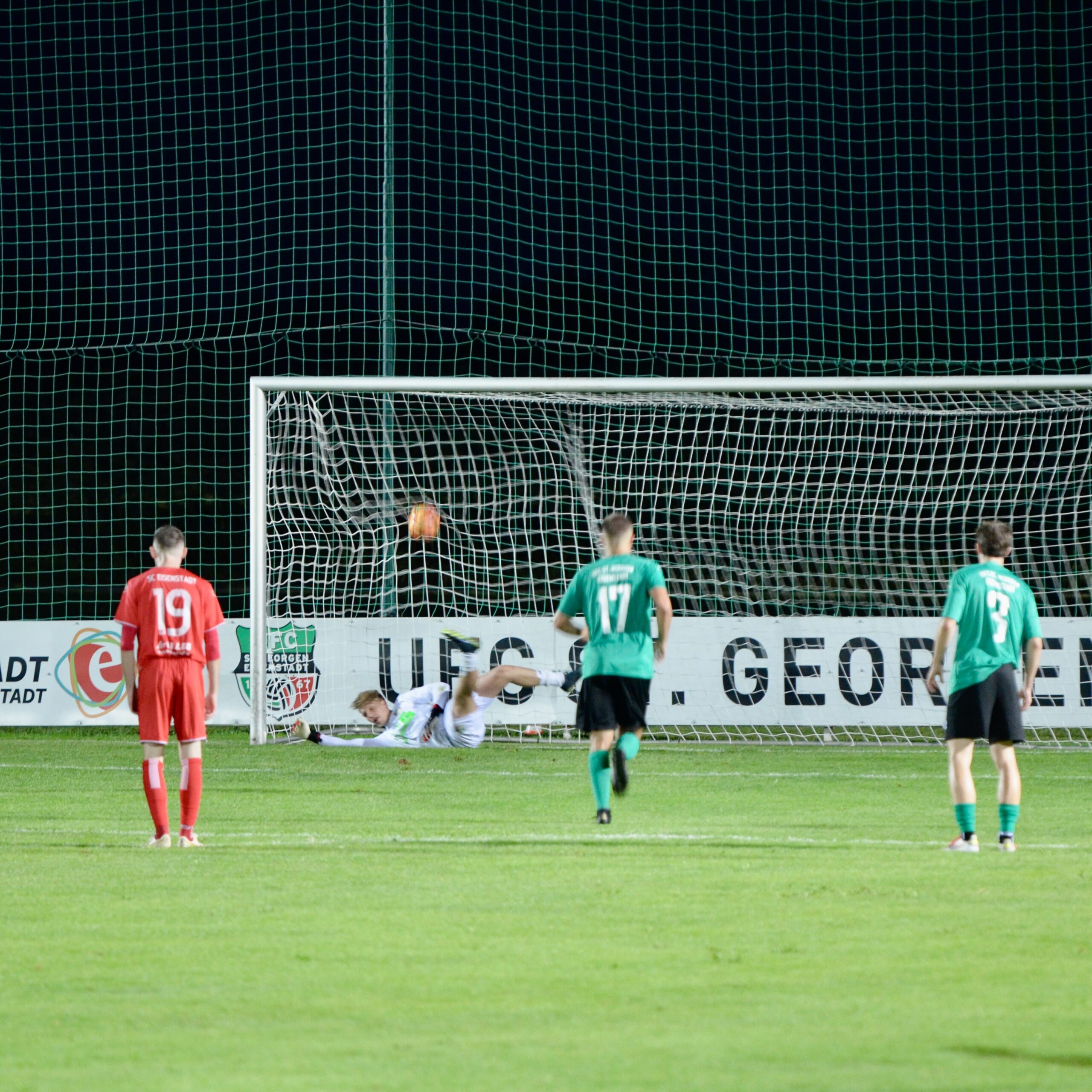 Zwei Minuten später ist schon wieder St. Georgen am Drücker. Ein Weitschuss von Christopher Pinter geht aber über das Tor. In der 31. Minute gibt es dann nach einem Zweikampf an der Strafraumgrenze Elfmeter für St. Georgen. Kilian Buchreiter setzt diesen aber mit einem überhasteten Schuss an die rechte Stange. Die Freude über das verhinderte dritte Tor währt bei den SCE-Fans aber nur kurz. Schon in der nächsten Szene startet Kilian Buchreiter aus abseitsverdächtiger Position. Schiedsrichter Luef Bernhard lässt aber weiterlaufen und so fällt der dritte Treffer.
