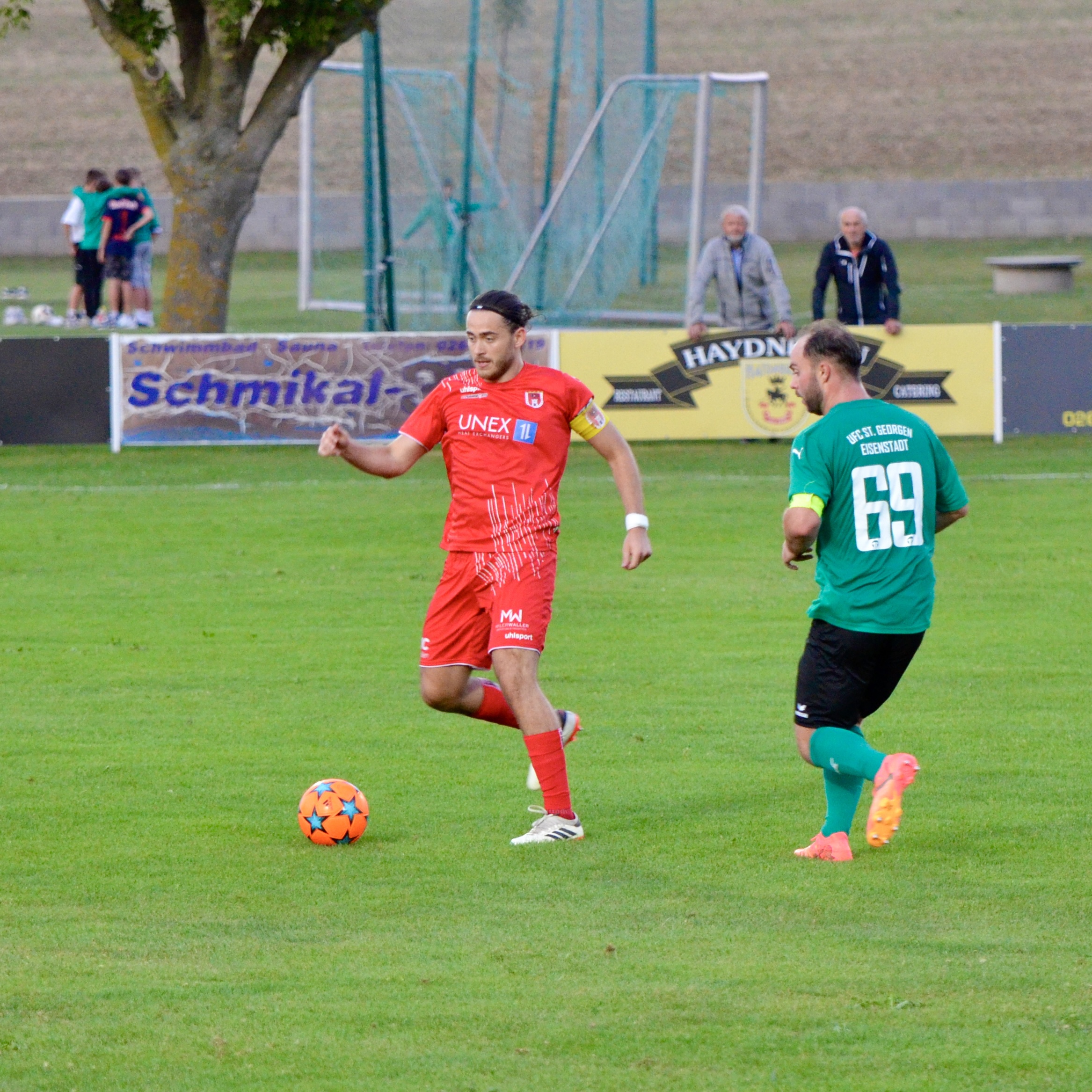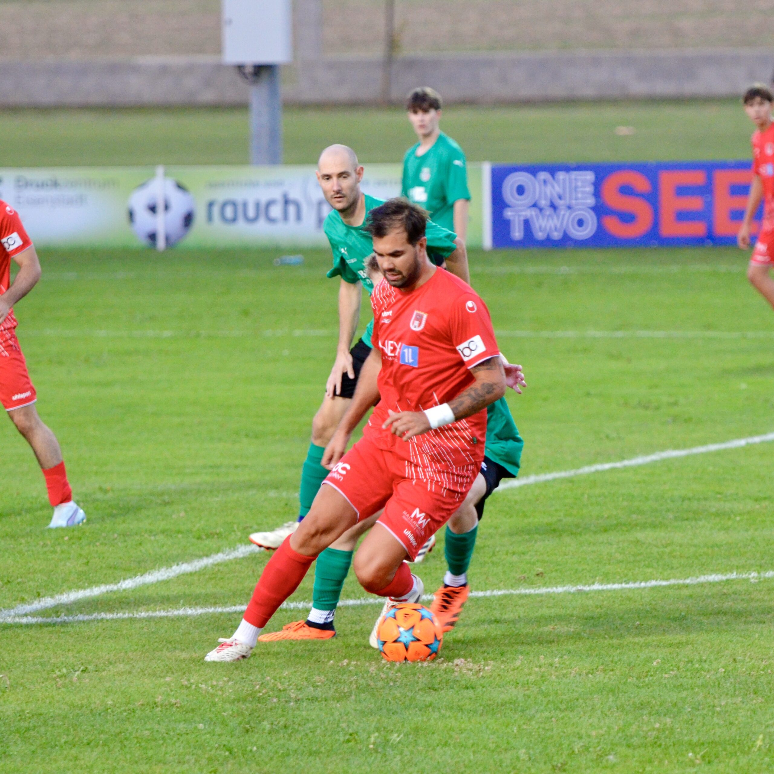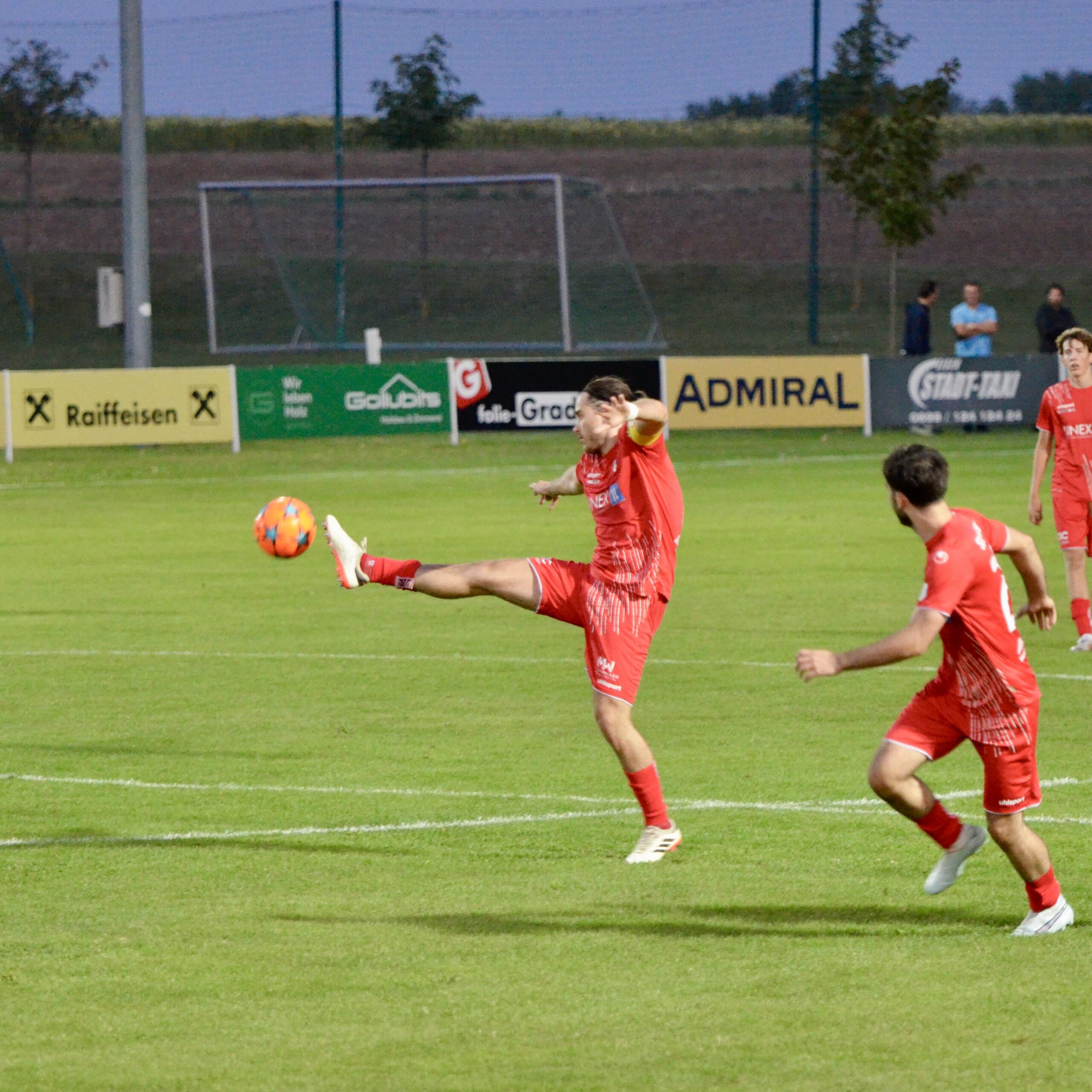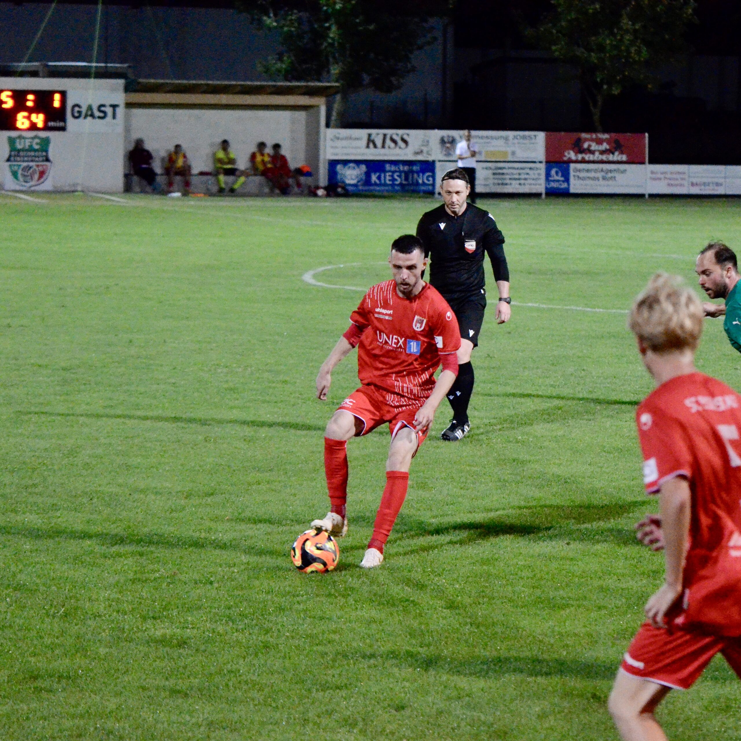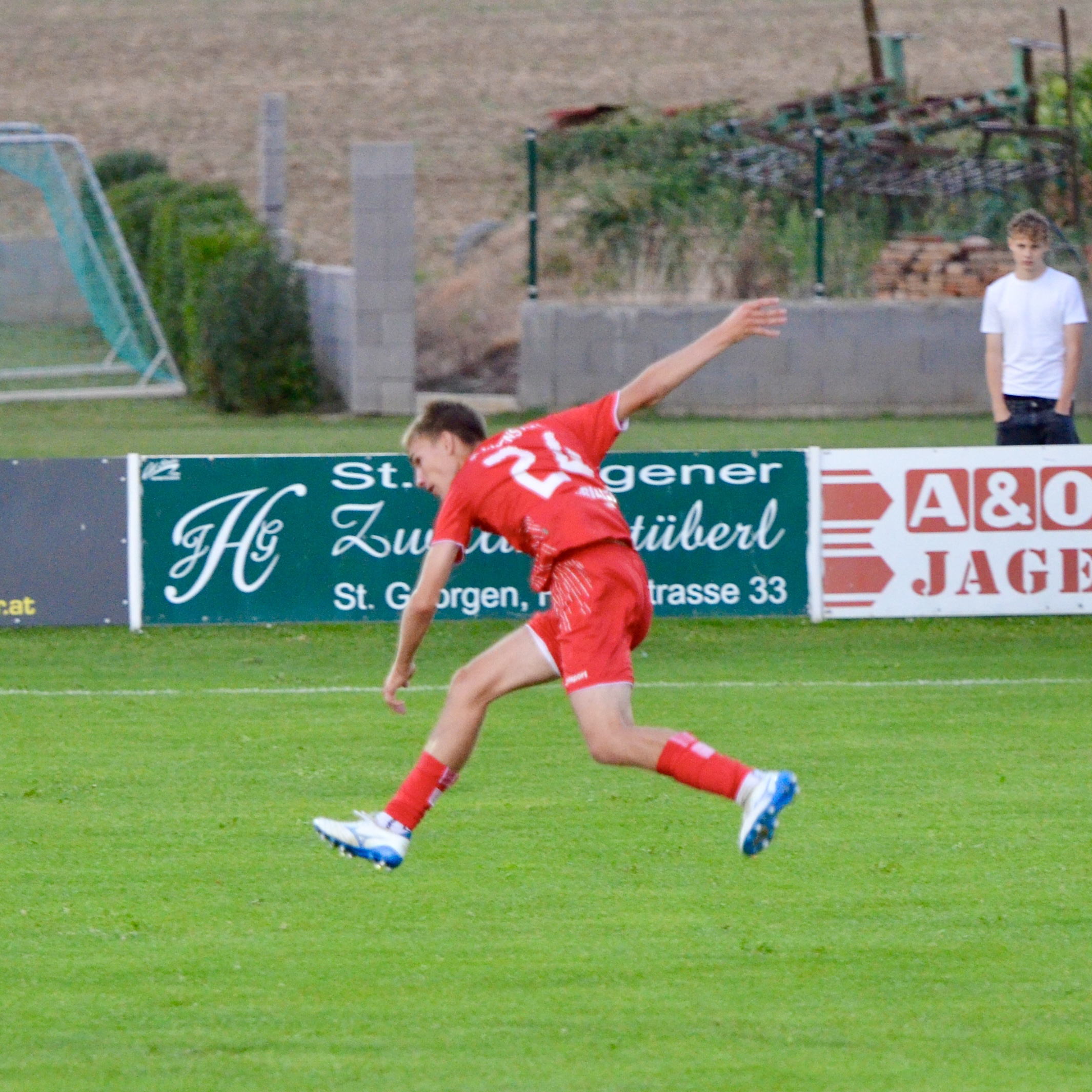 Schon in der 3. Minute zeigten die Gastgeber aus dem Stadtteil St. Georgen ihre Gefährlichkeit. Ein Freistoß von Kilian Buchreiter knallt an die Stange. Nur 3 Minuten später kommt Max Manninger aus linker Position aus kurzer Distanz zum Schuss, den Abpraller kann Christopher Pinter per Kopf nicht verwerten. In Minute 13 ist es dann aber soweit. Max Manninger wird von der Abwehr allein gelassen. Er kann einen Sololauf aufs Tor starten und zum 1:0 abschließen.
