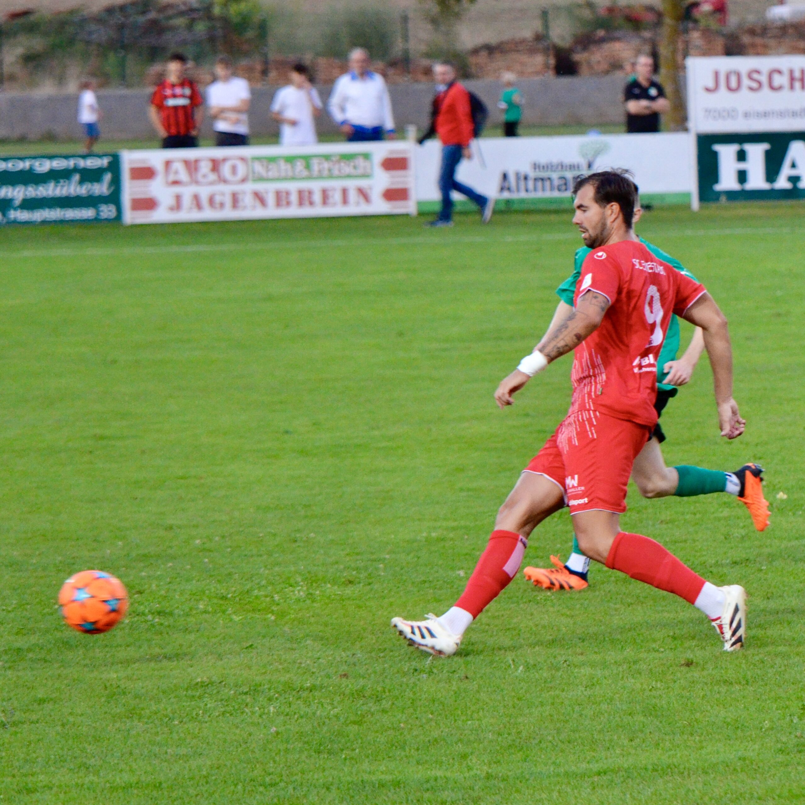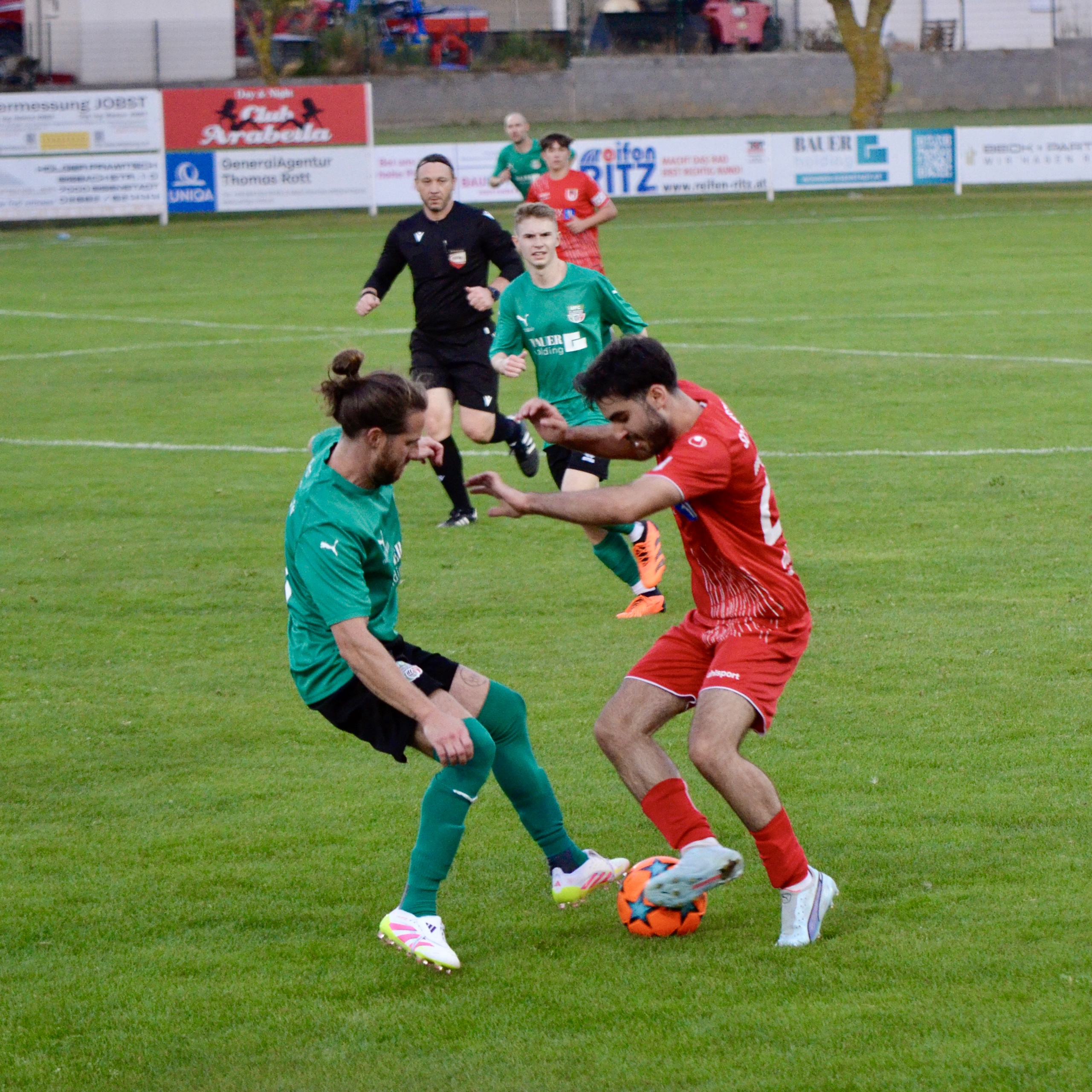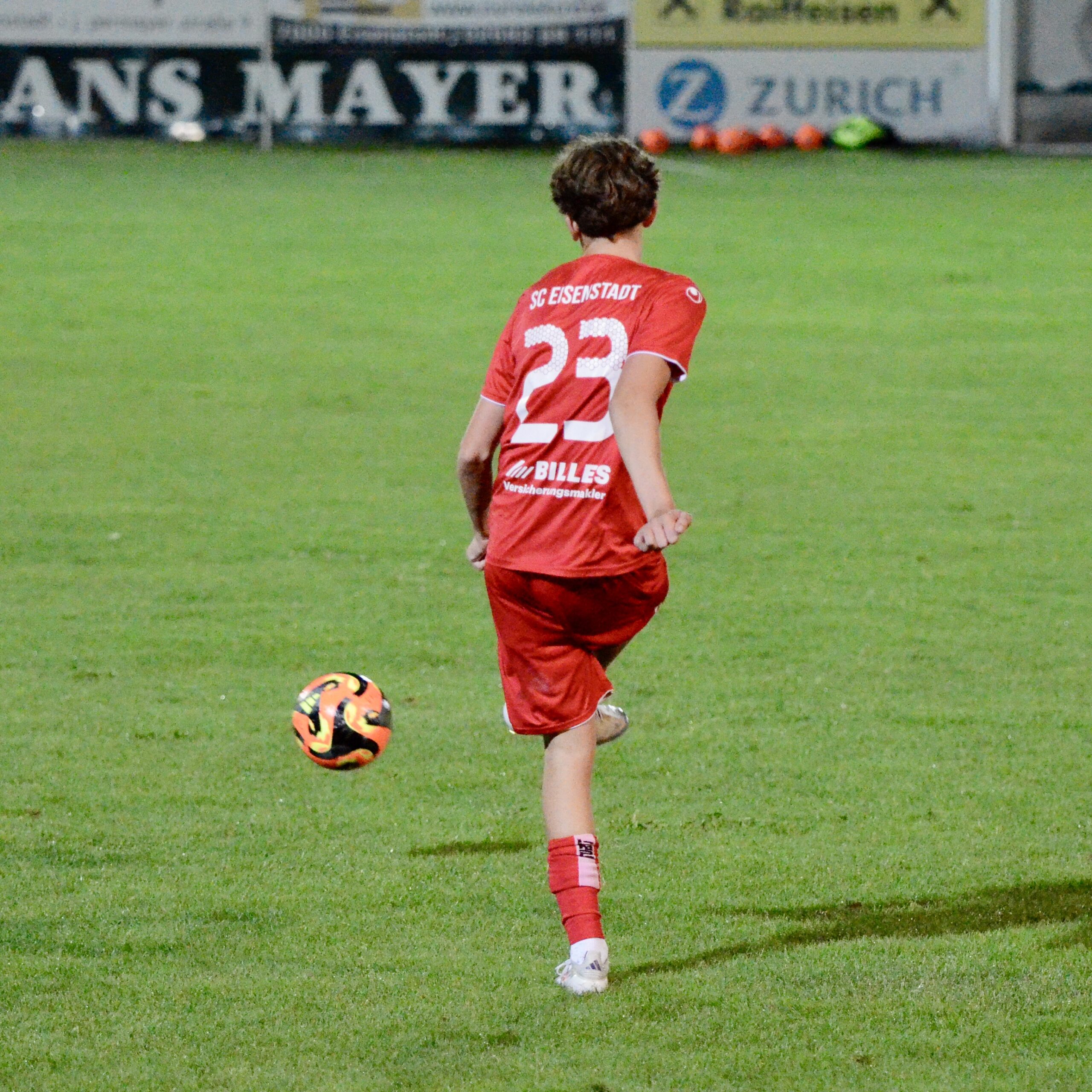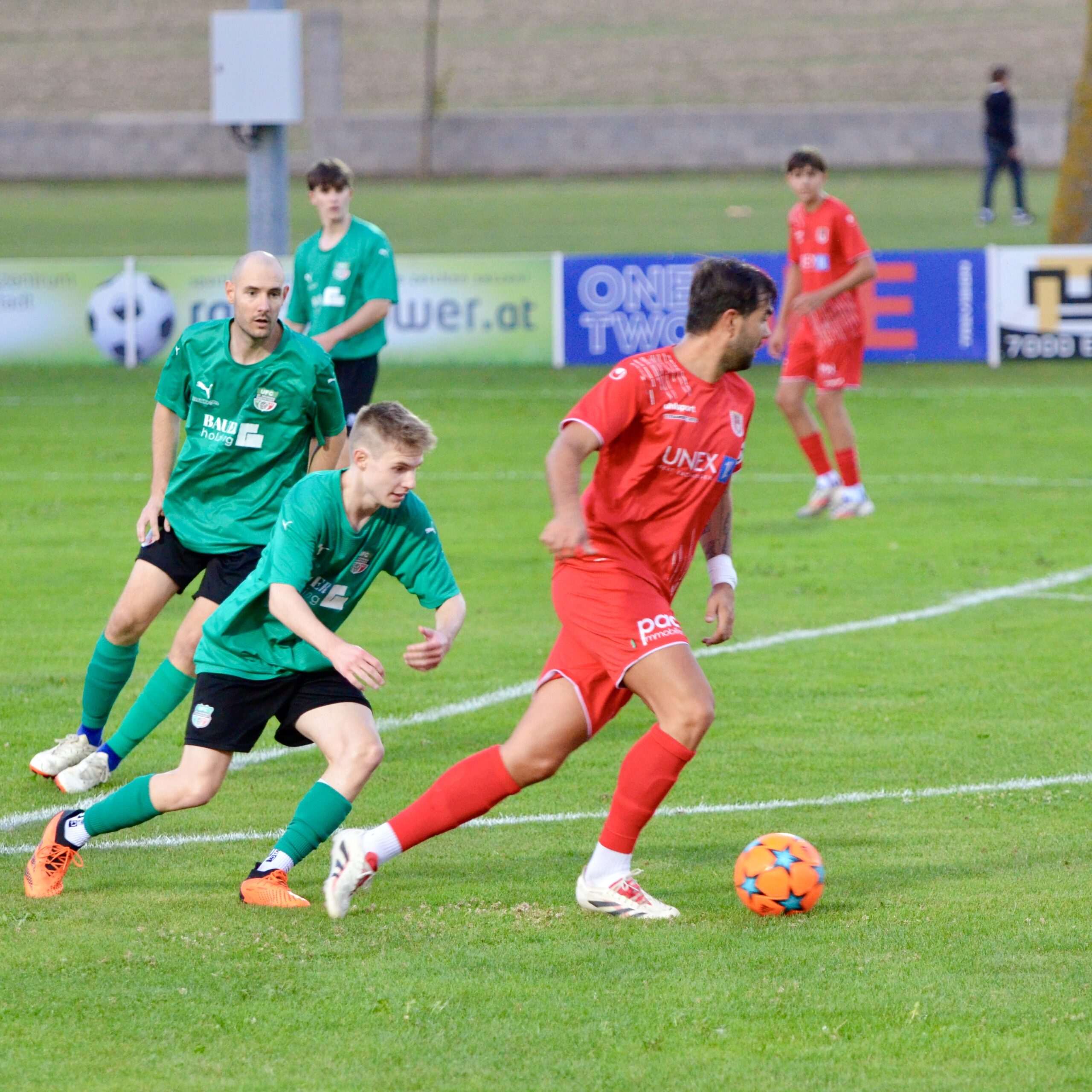 Schon in der 3. Minute zeigten die Gastgeber aus dem Stadtteil St. Georgen ihre Gefährlichkeit. Ein Freistoß von Kilian Buchreiter knallt an die Stange. Nur 3 Minuten später kommt Max Manninger aus linker Position aus kurzer Distanz zum Schuss, den Abpraller kann Christopher Pinter per Kopf nicht verwerten. In Minute 13 ist es dann aber soweit. Max Manninger wird von der Abwehr allein gelassen. Er kann einen Sololauf aufs Tor starten und zum 1:0 abschließen.